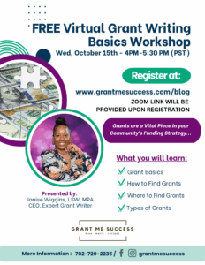 Learn Grant Basics, How to Find Grants, Where to Find Grants and the Types of Grants. Presented by Janise Wiggins, Expert Grant Writer and CEO of Grant Me Success